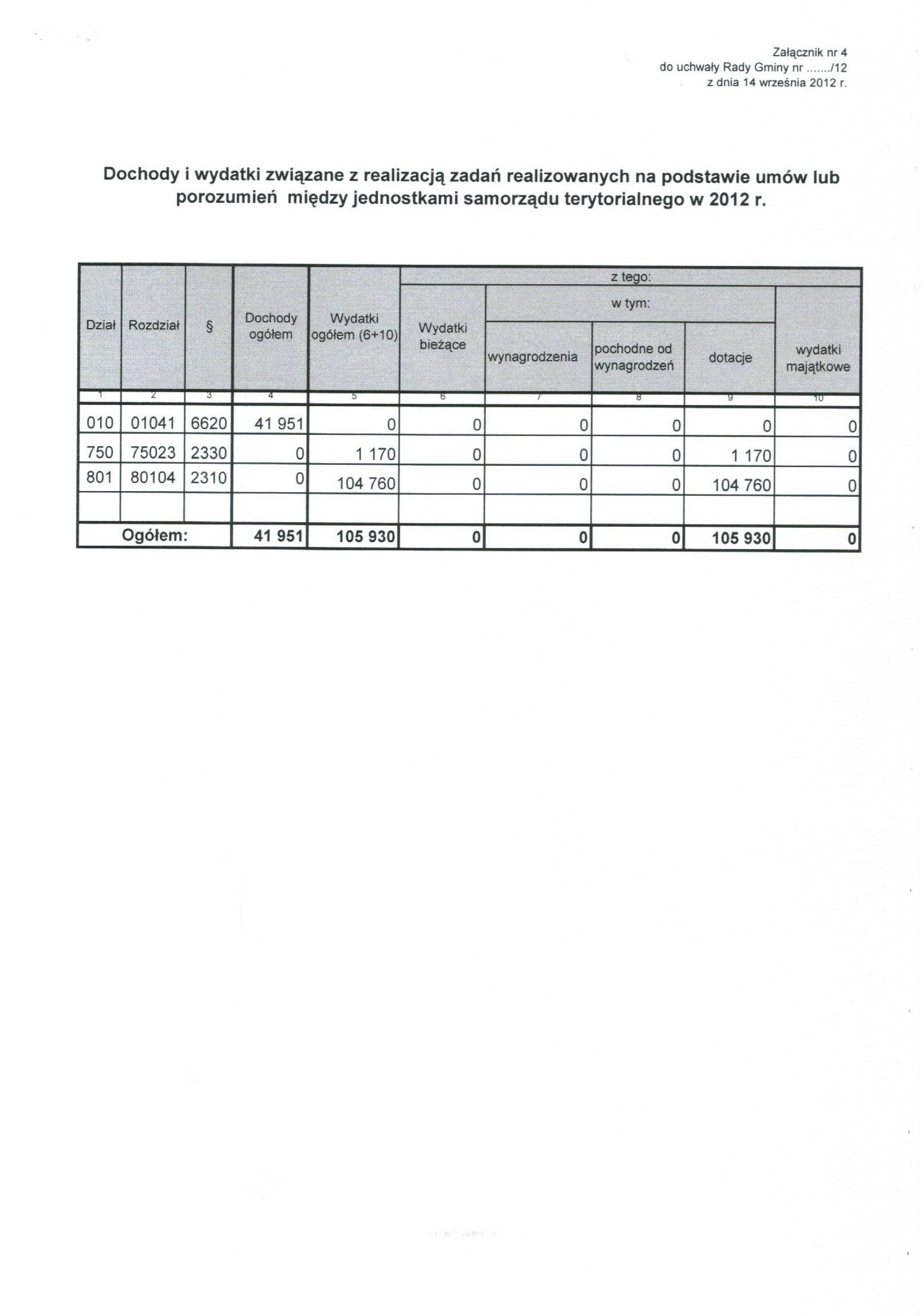 - zal.4 do projektu uchwały w sprawie zmian w budżecie gminy na 2012 rok
