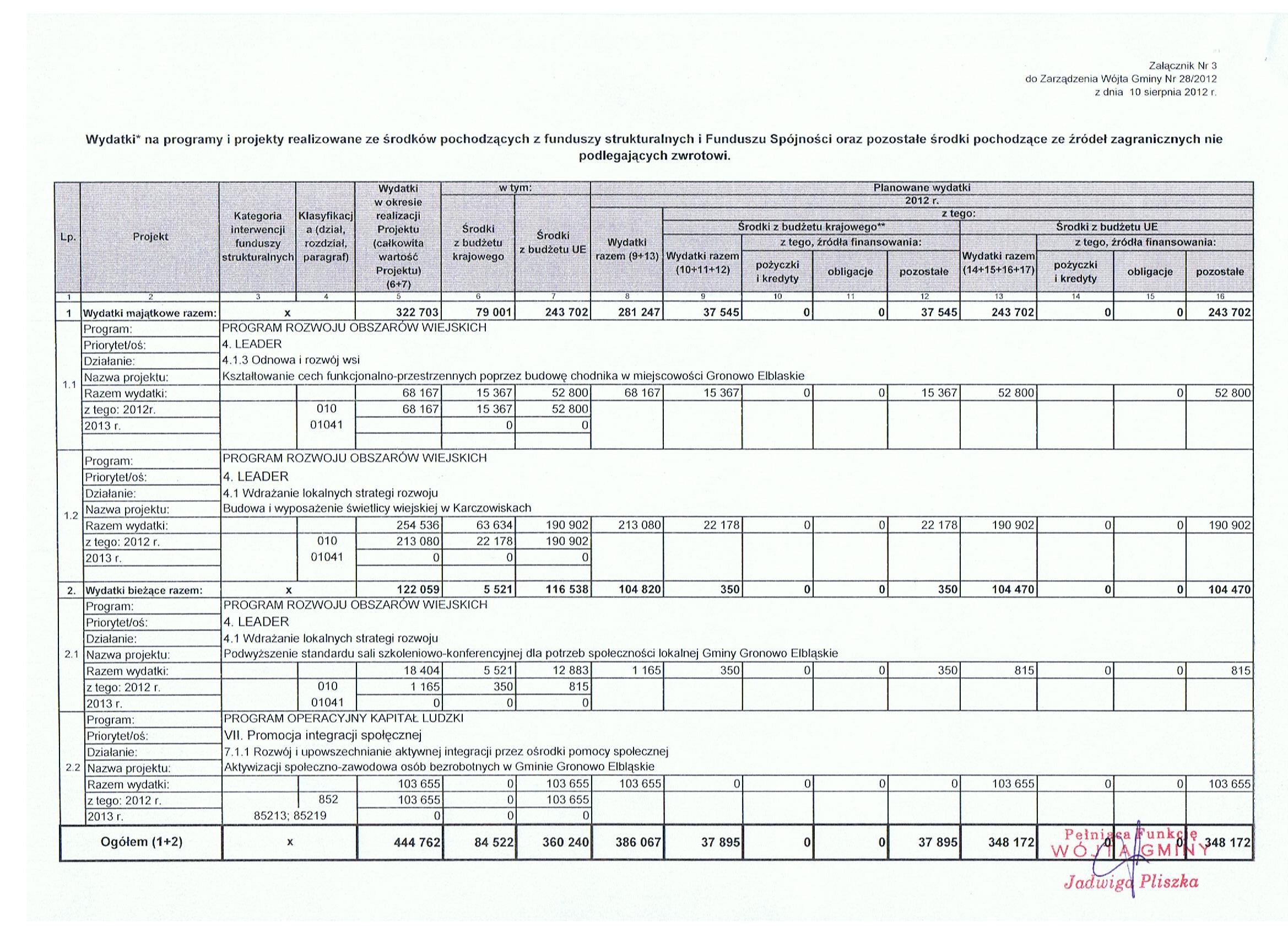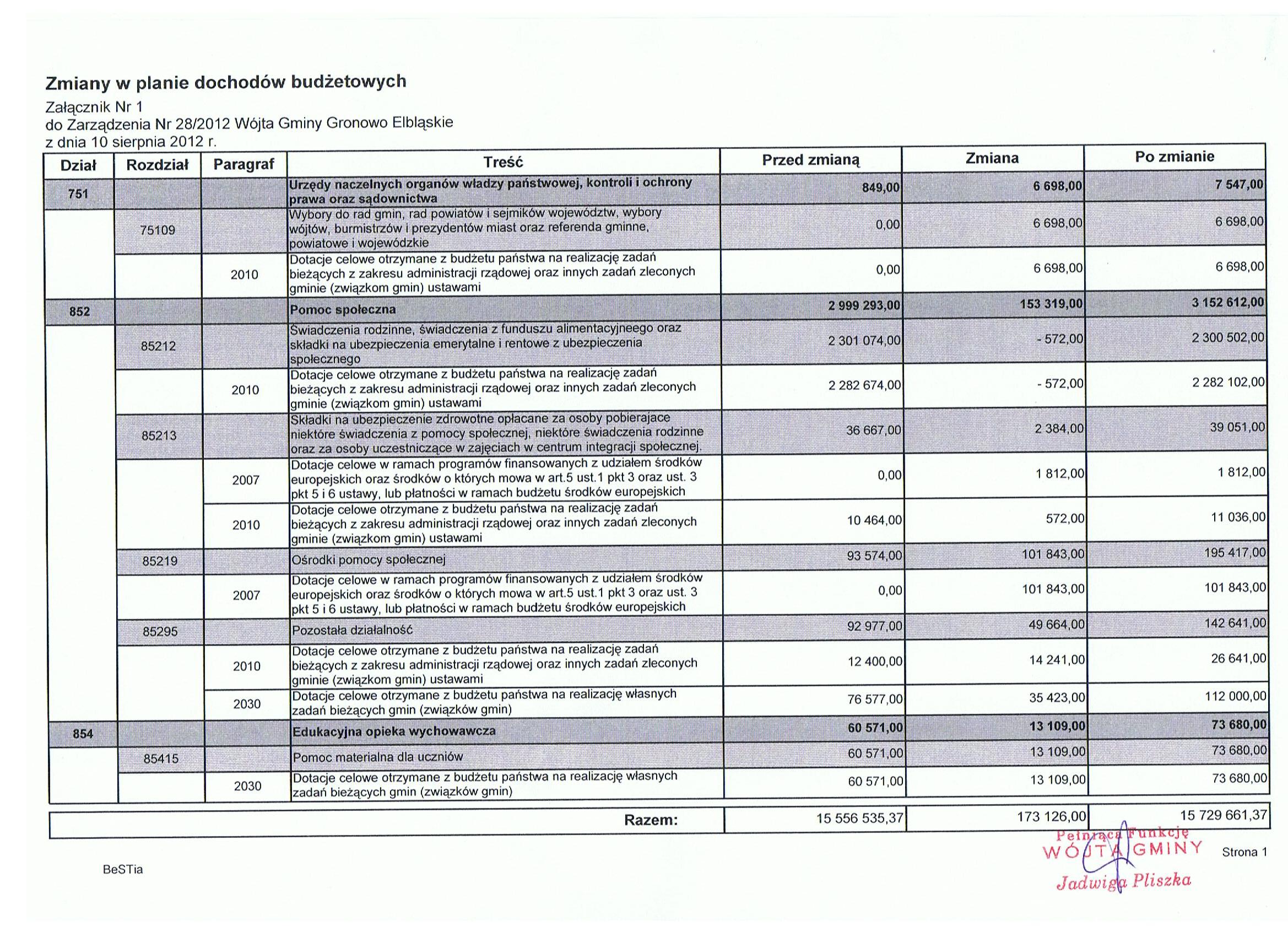 Zarządzenie Nr 28/12 Wójta Gminy Gronowo Elbląskie z dnia 10 sierpnia 2012 roku w sprawie zmian w budżecie gminy na 2012 rok