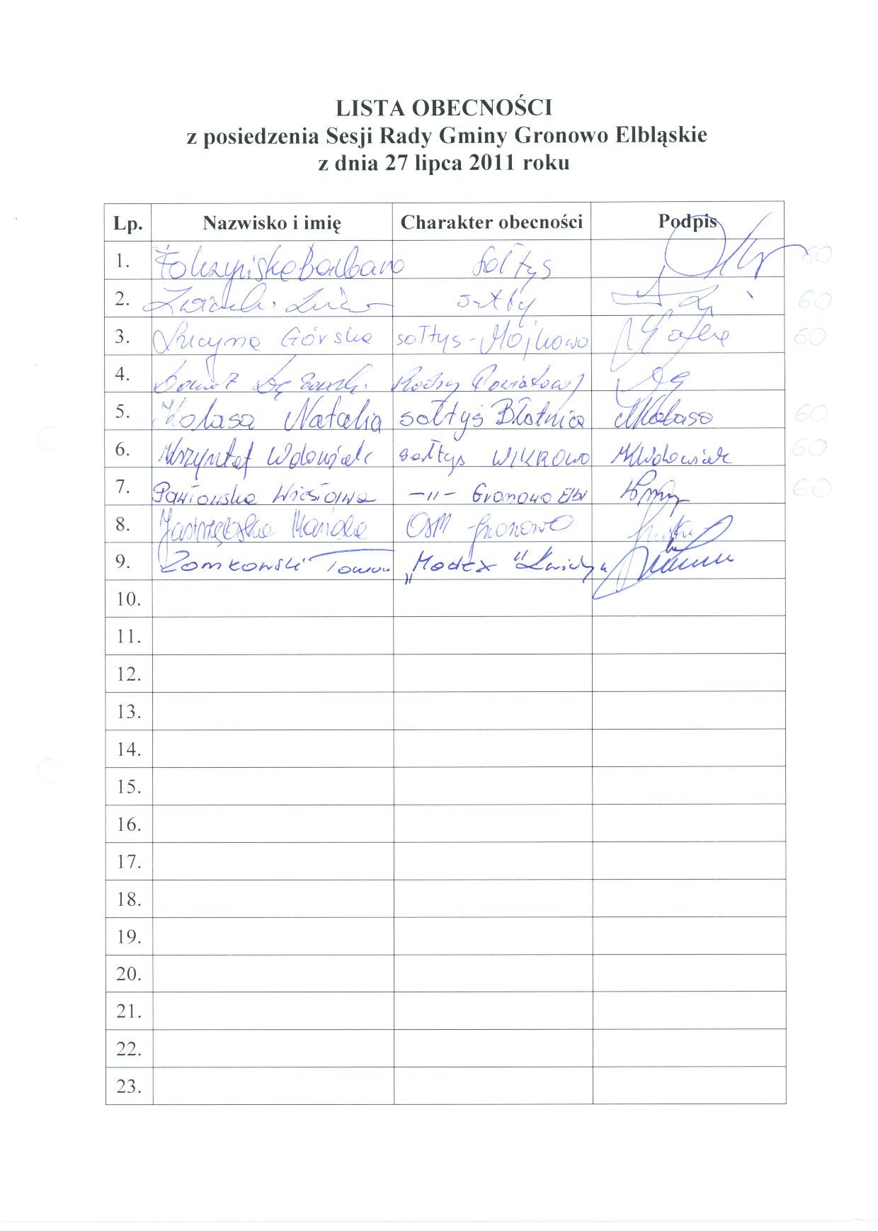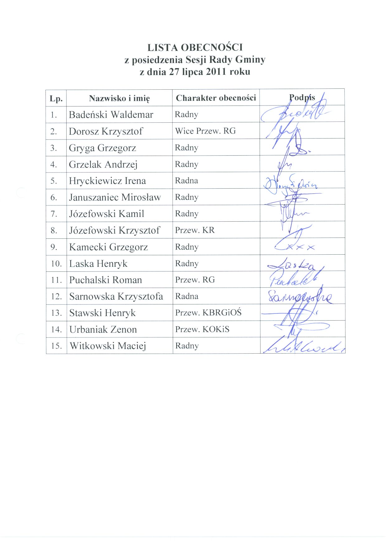 Protokół z Sesji Rady Gminy Nr VIII/2011 z dnia 27 lipiec 2011 r.