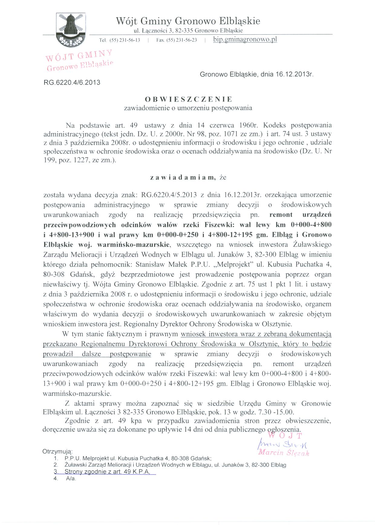 Wersja obowiązująca z dnia 23-05-2016 09:56:20 Drukuj Obwieszczenie o umorzeniu postępowania i przekazaniu dokumentacji do RDOŚ w Olsztynie Załączniki obwieszczenie 2 format: image/jpeg, rozmiar: 295.09 KB, data dodania: 23-05-2016 09:56:20