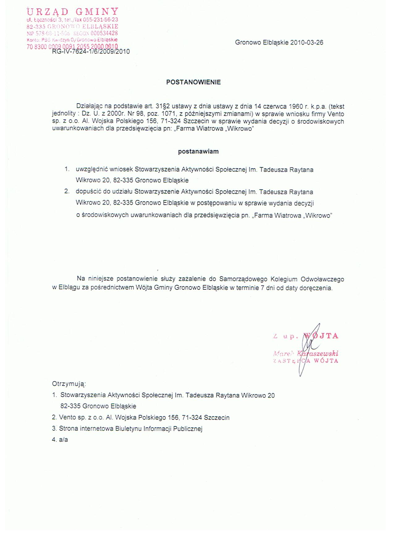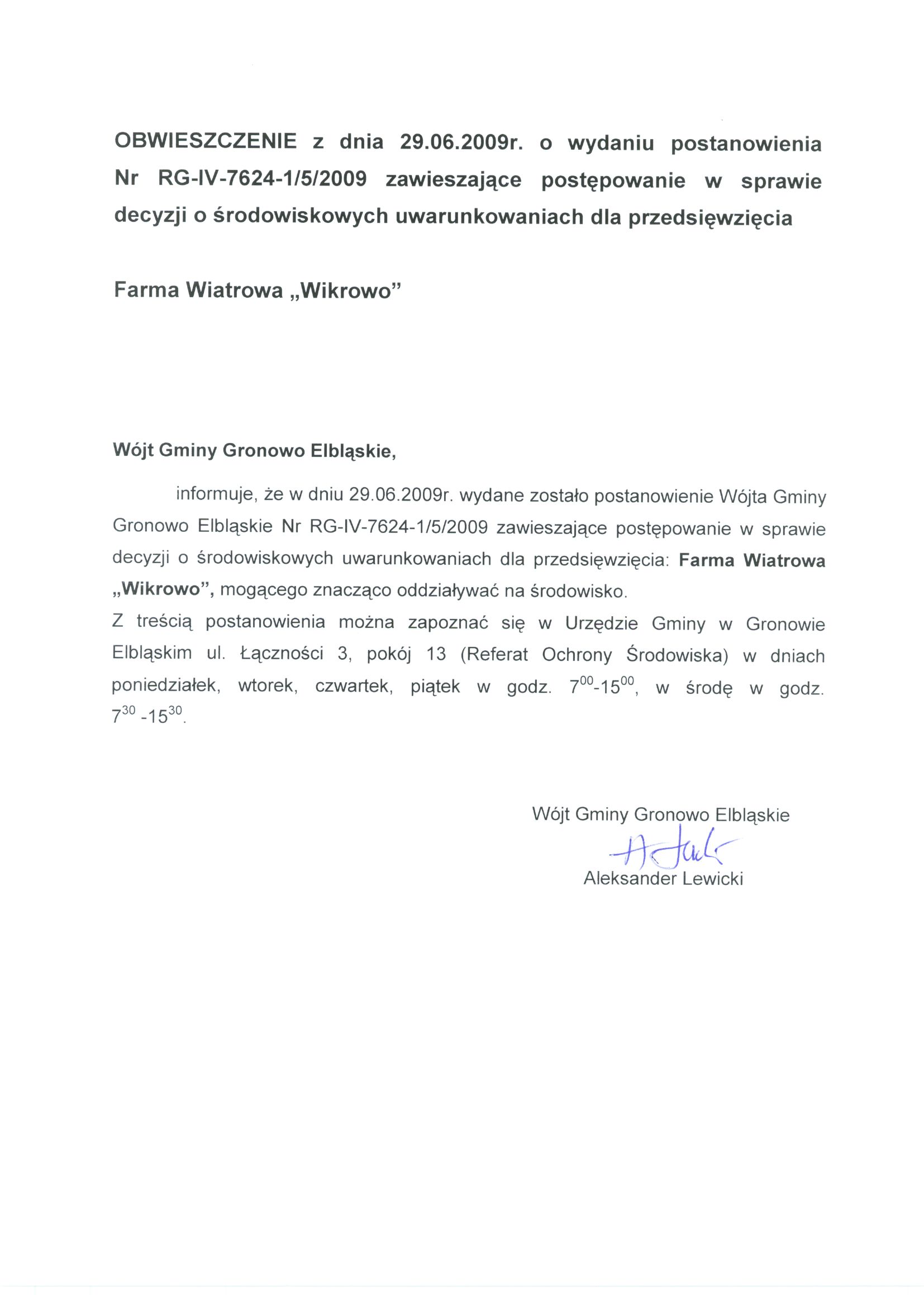 Obwieszczenie z dn. 29.06.2009 r. o wydaniu postanowienia