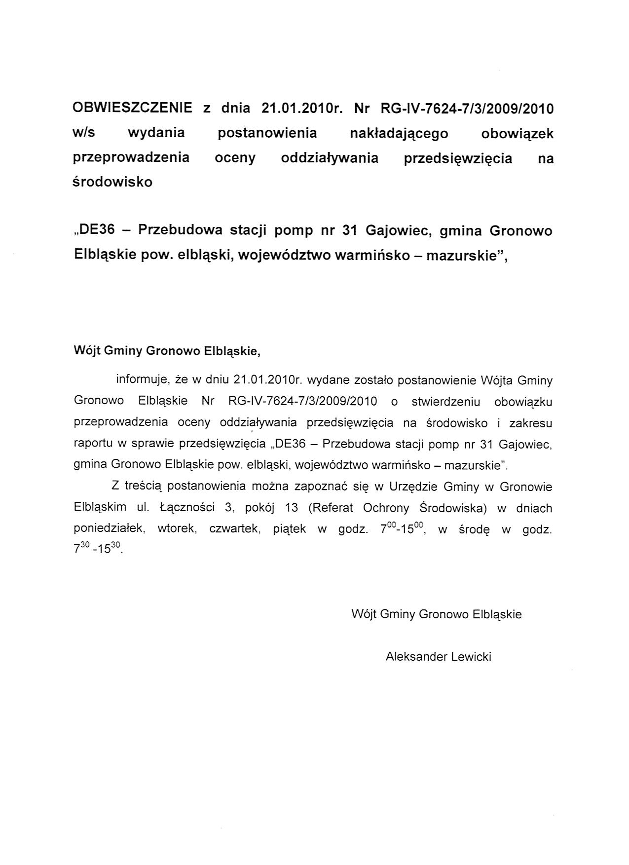 Obwieszczenie z dnia 21.01.2010_przebud. pomp_27.01.2010