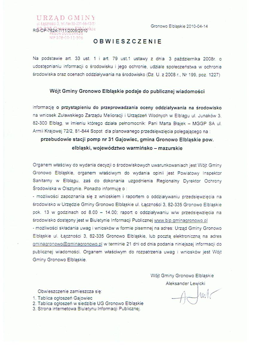 obwieszczenie Wójta_przebud. stacji pomp_14.04.2010
