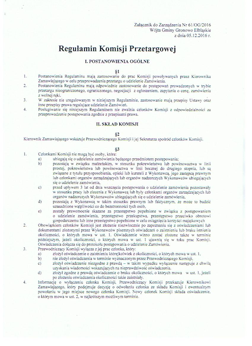 Zarządzenie Nr 61/0G/2016 Wójta Gminy Gronowo Elbląskie