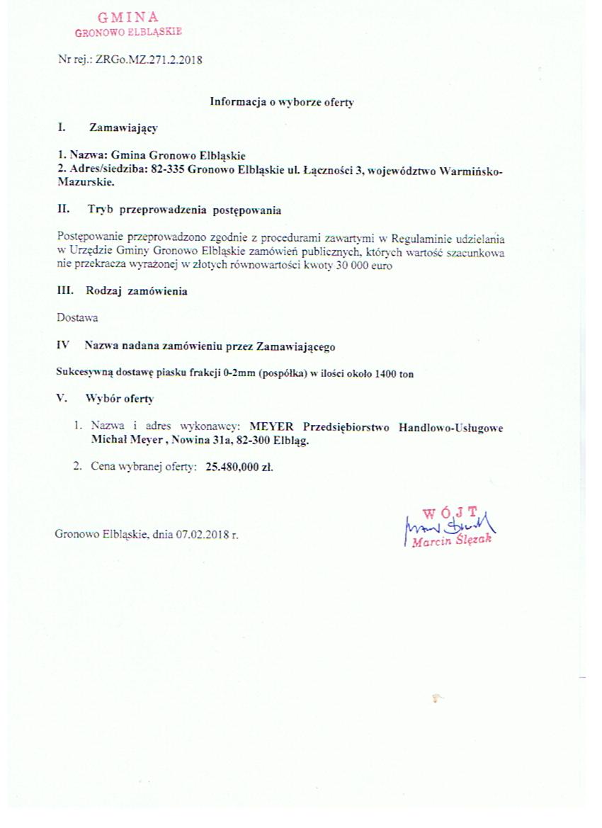 Informacja o wyborze oferty z dnia 07.02.2018 r.