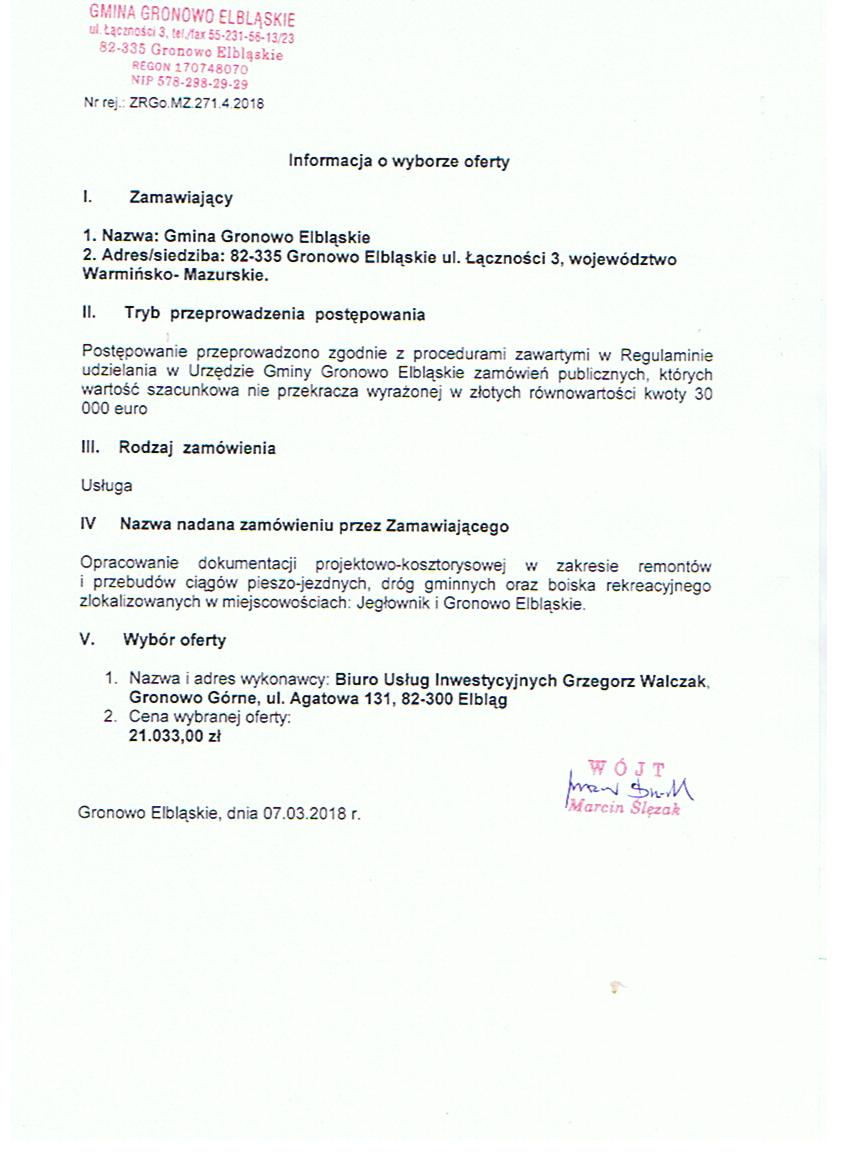 Wersja obowiązująca z dnia 08-03-2018 09:15:24 Drukuj Informacja o wyborze oferty z dnia 07.03.2018 r. Załączniki Informacja o wyborze najkorzytniejscej oferty z dnia 07.03.2018r format: image/jpeg, rozmiar: 85.67 KB, data dodania: 08-03-2018 09:15:24