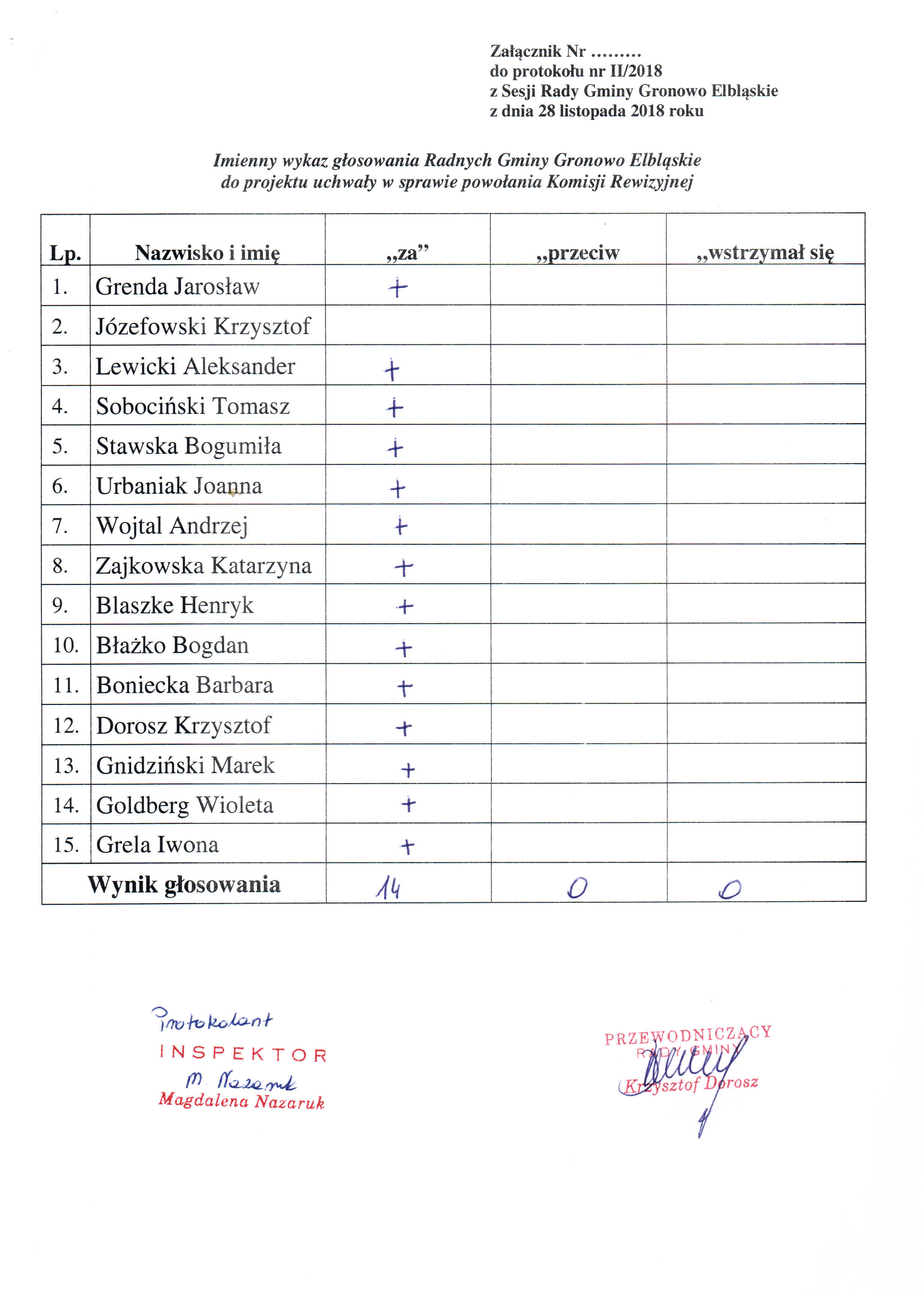 - pkt. 4 b - Imienny wykaz głosowania Radnych Gminy Gronowo Elbląskie w sprawie powołania Komisji Rewizyjnej