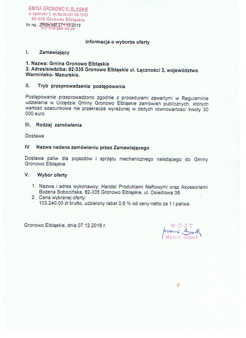 Wersja obowiązująca z dnia 10-12-2018 14:36:26 Drukuj Informacja o wyborze oferty z dnia 07.12.2018 r. Załączniki Informacja o wyborze oferty z dnia 07.12.2018r. format: image/jpeg, rozmiar: 85.51 KB, data dodania: 10-12-2018 14:36:26