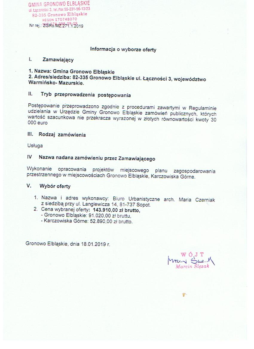 Wersja obowiązująca z dnia 23-01-2019 15:23:45 Drukuj Informacja o wyborze oferty z dnia 18.01.2019r. Załączniki Informacja o wyborze oferty z dnia 18.01.2019r. format: image/jpeg, rozmiar: 88.53 KB, data dodania: 23-01-2019 15:23:45