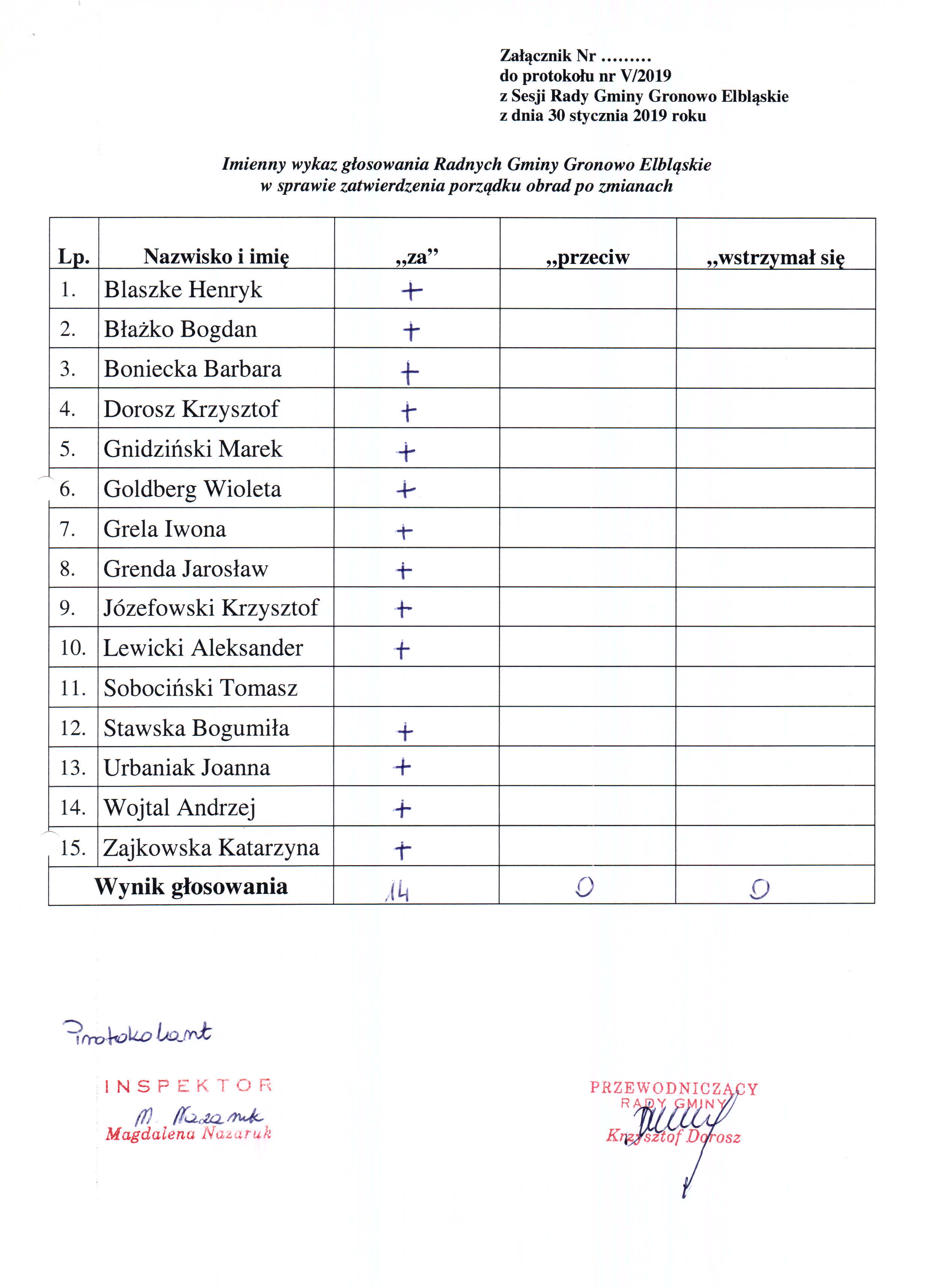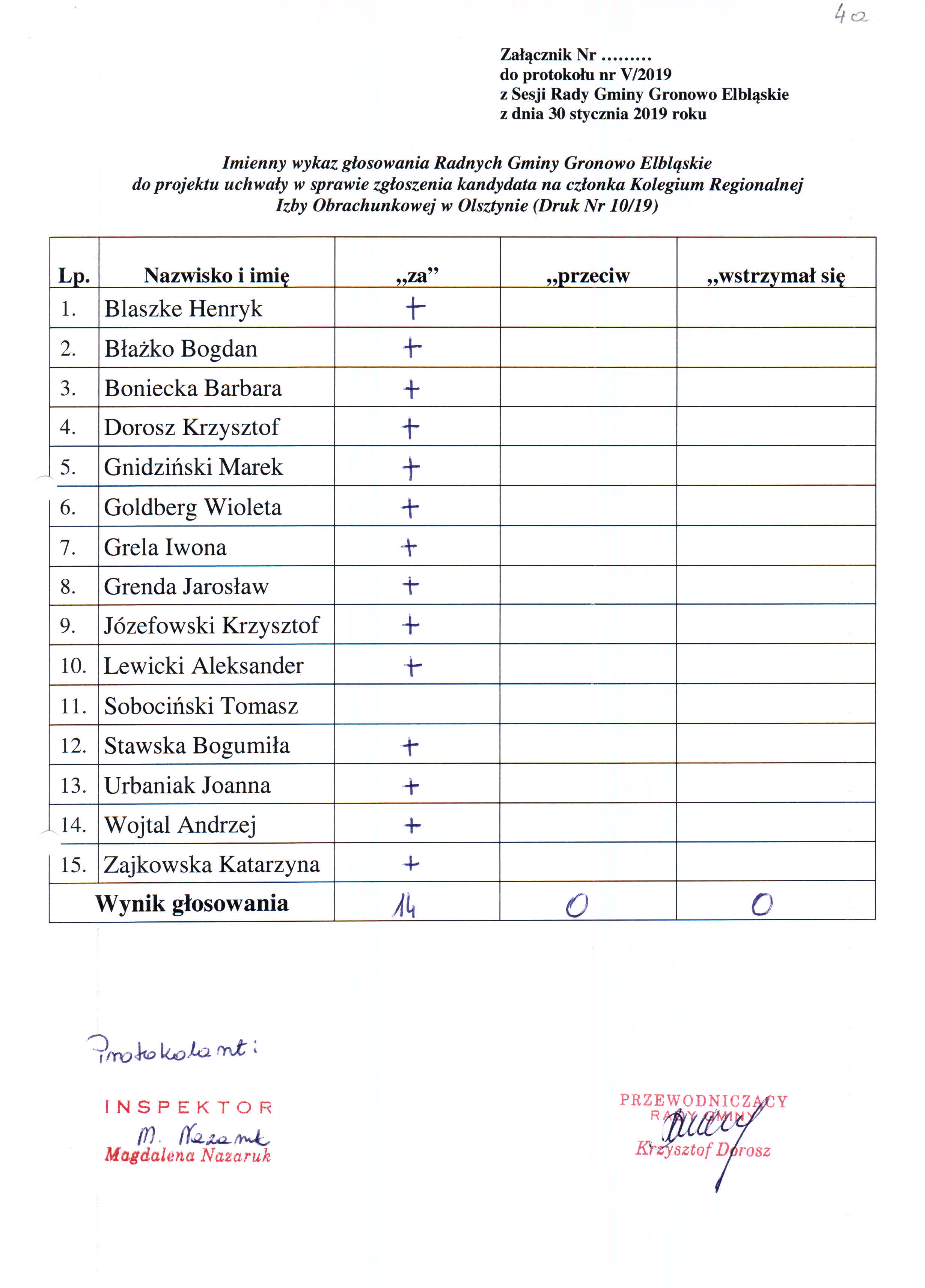 Wersja nieobowiązująca z dnia 05-02-2019 11:27:49 Drukuj V Sesja Rady Gminy Gronowo Elbląskie VIII Kadencji Załączniki pkt. 4 a - Głosowanie imienne do projektu uchwały w sprawie zgłoszenia kandydata na członka Kolegium Regionalnej Izby Obrachunkowej w Olsztynie format: image/jpeg, rozmiar: 571.46 KB, data dodania: 05-02-2019 11:27:49 Głosowanie imienne w sprawie zatwierdzenia porządku obrad po zmianach format: image/jpeg, rozmiar: 555.84 KB, data dodania: 05-02-2019 11:27:49 Wersja nieobowiązująca Strona może zawierać nieaktualną treść i załączniki. Możesz pozostać na tej stronie lub przejść na wersję z obowiązującą zawartością. Nie pokazuj ponownie Pozostań Przejdź do wersji obowiązującej