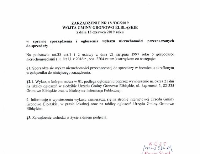 zarządzenie 18 OG 2019 z 13 czerwca wykaz