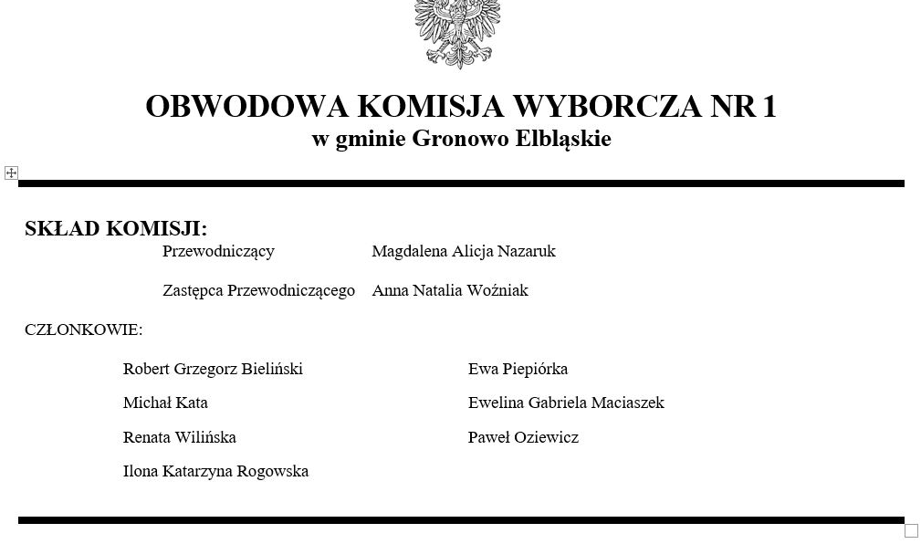 Składy komisji wyborczych Gronowo Elbląskie ,Jegłownik w Wyborach na Prezydenta RP 28.06.2020 r