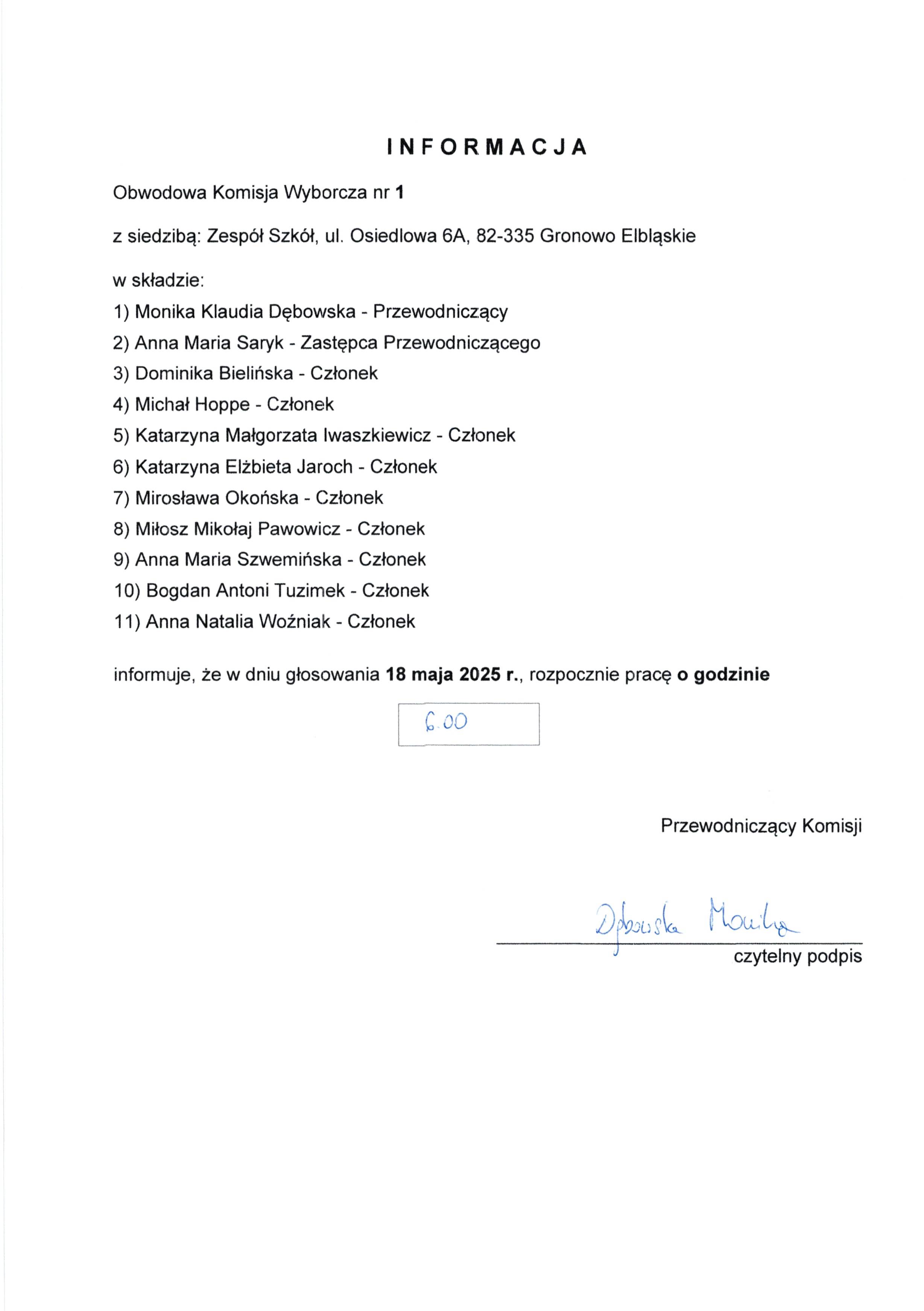 Obwodowe Komisje Wyborcze - składy wybory Prezydenckie 2025r
