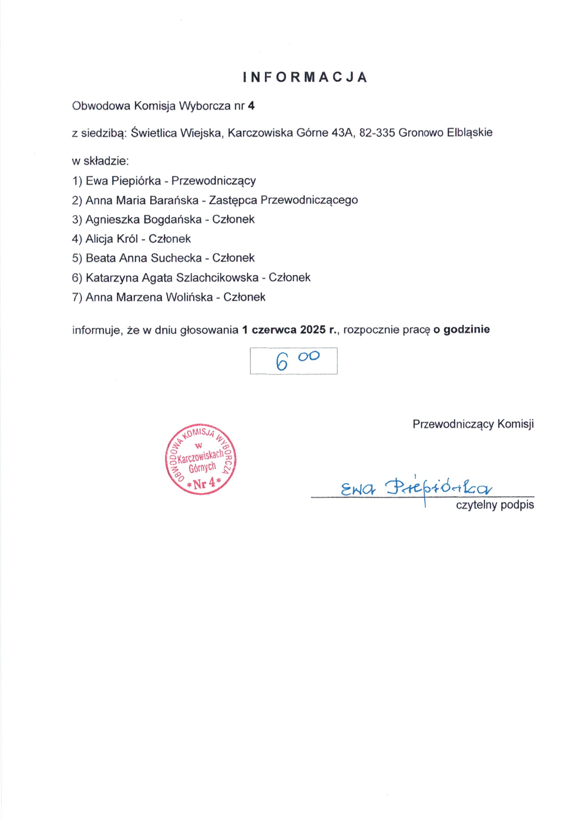 Obwodowe Komisje Wyborcze - składy wybory Prezydenckie 2025r