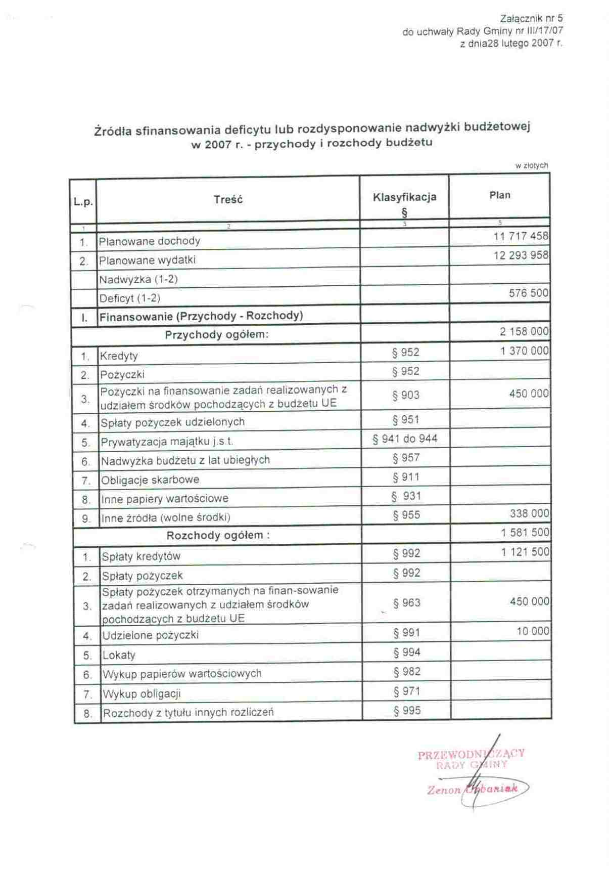 Uchwała Rady Gminy Nr III/17/07 zal. 5