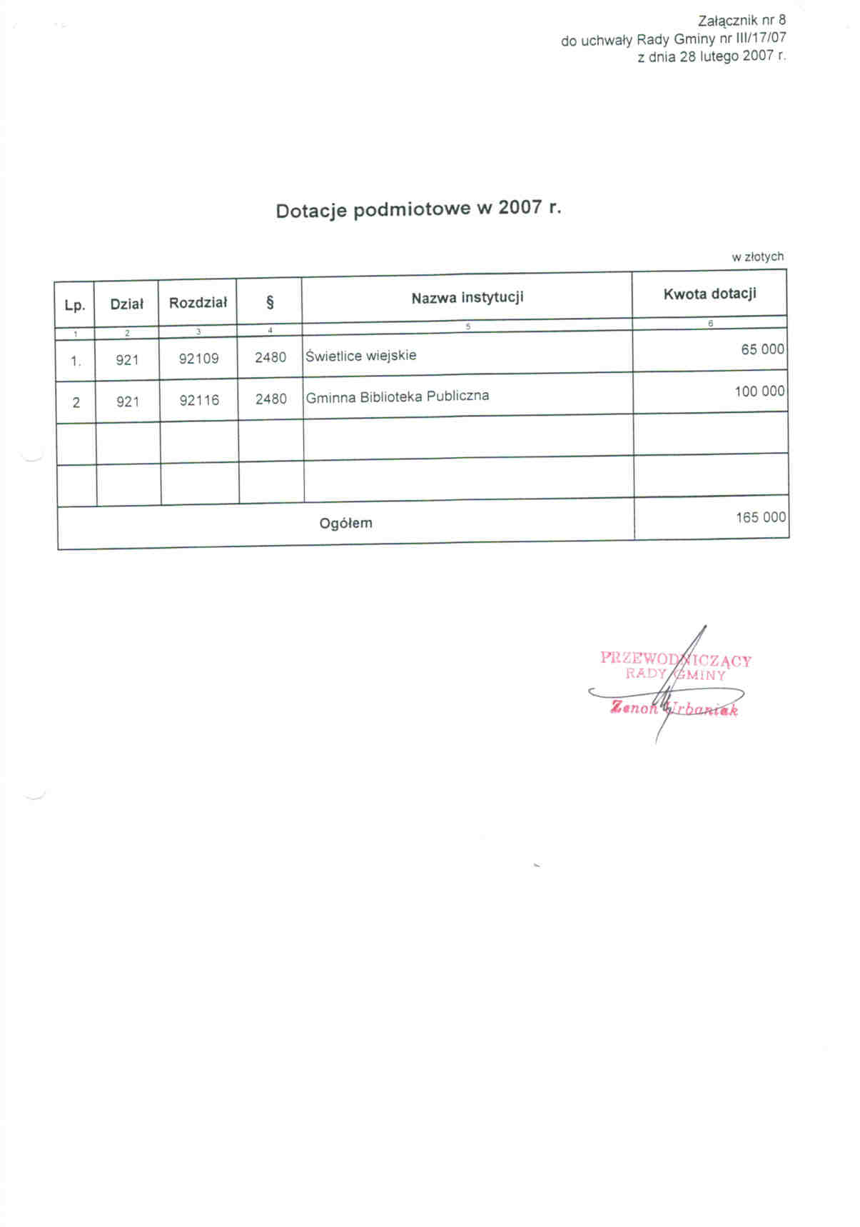 Uchwała Rady Gminy Nr III/17/07 zal. 2