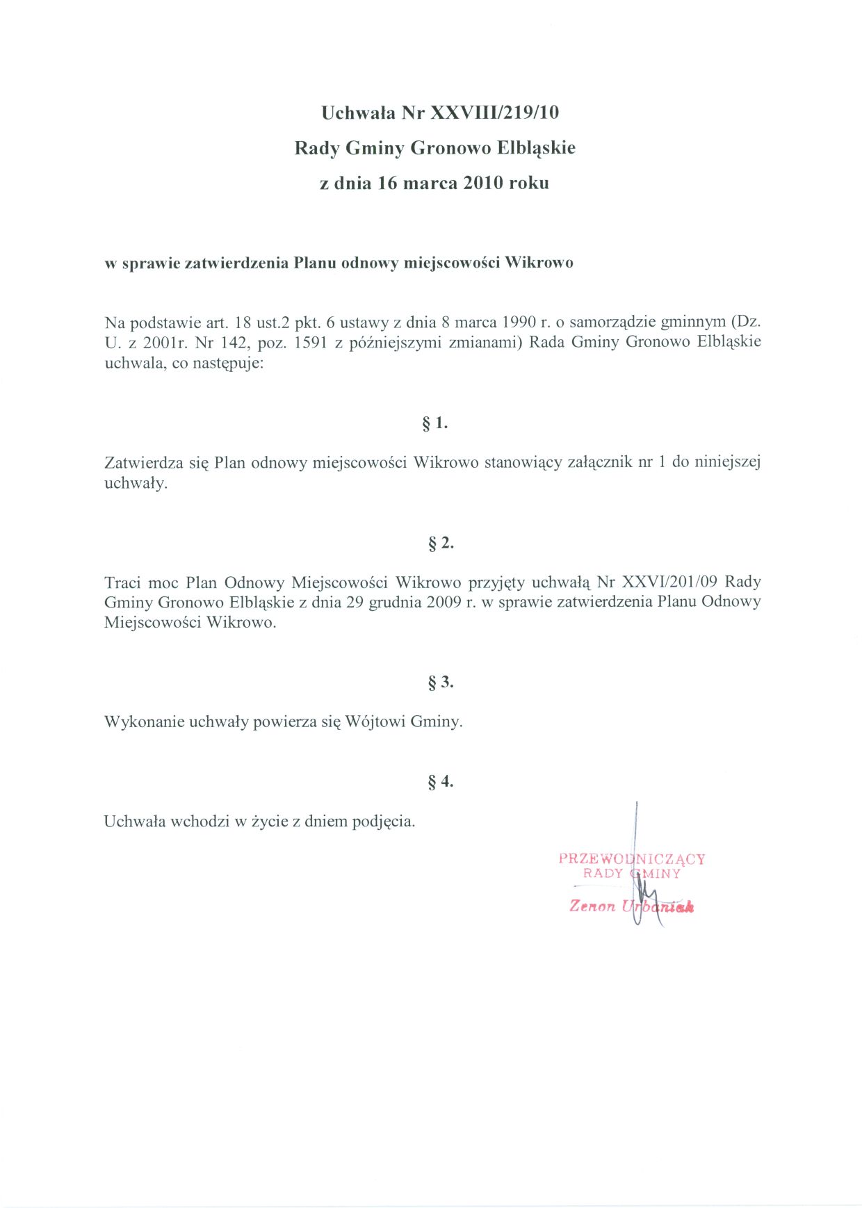 W sprawie zatwierdzenia Planu Odnowy Miejscowości Wikrowo