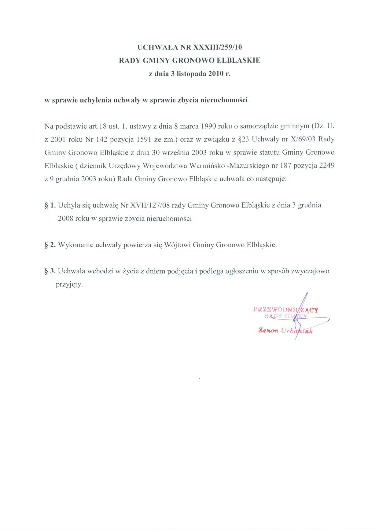 Uchwała Rady Gminy Nr XXXIII/259/10