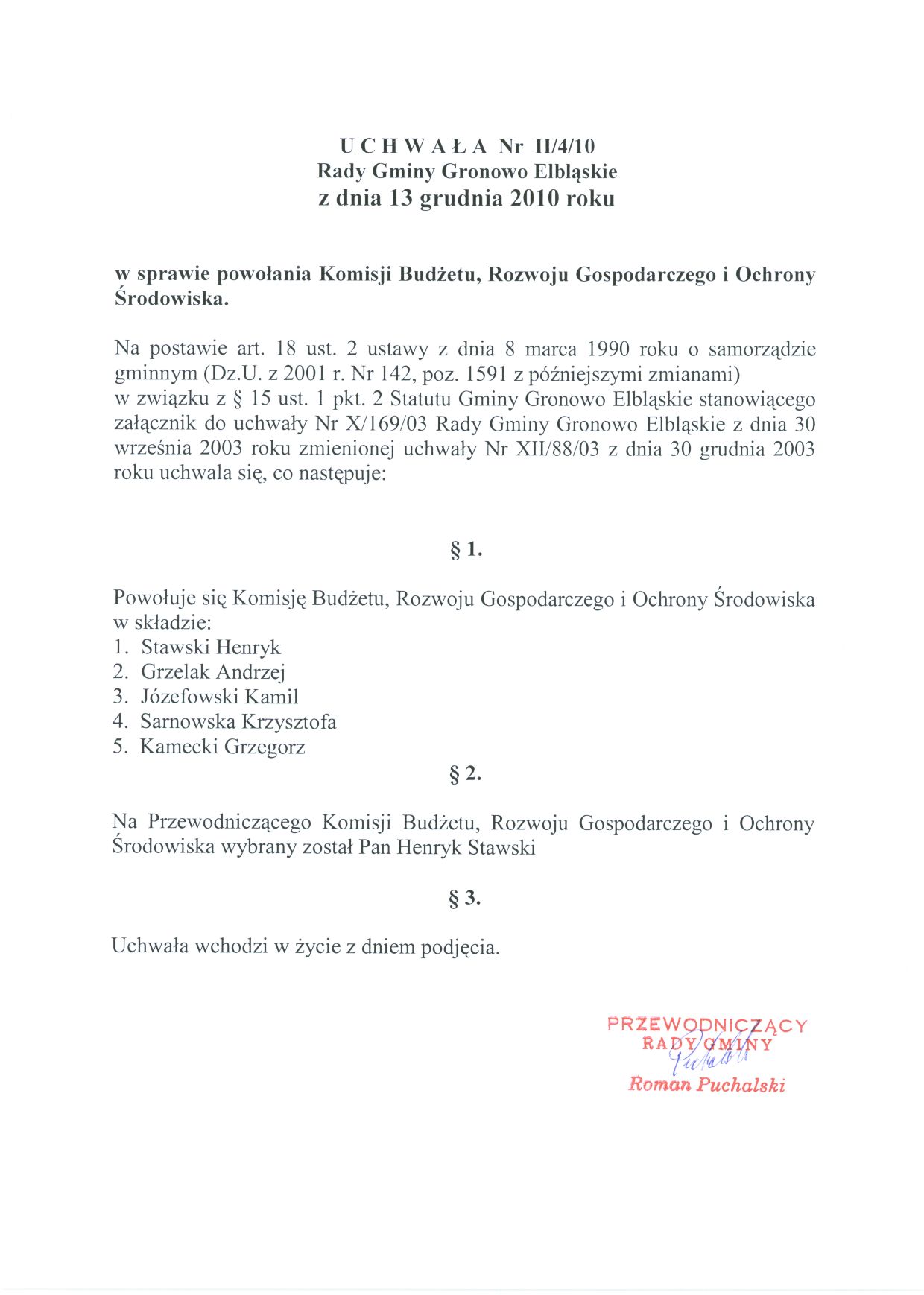W sprawie powołania Komisji Budżetu, Rozwoju Gospodarczego i Ochrony Środowiska