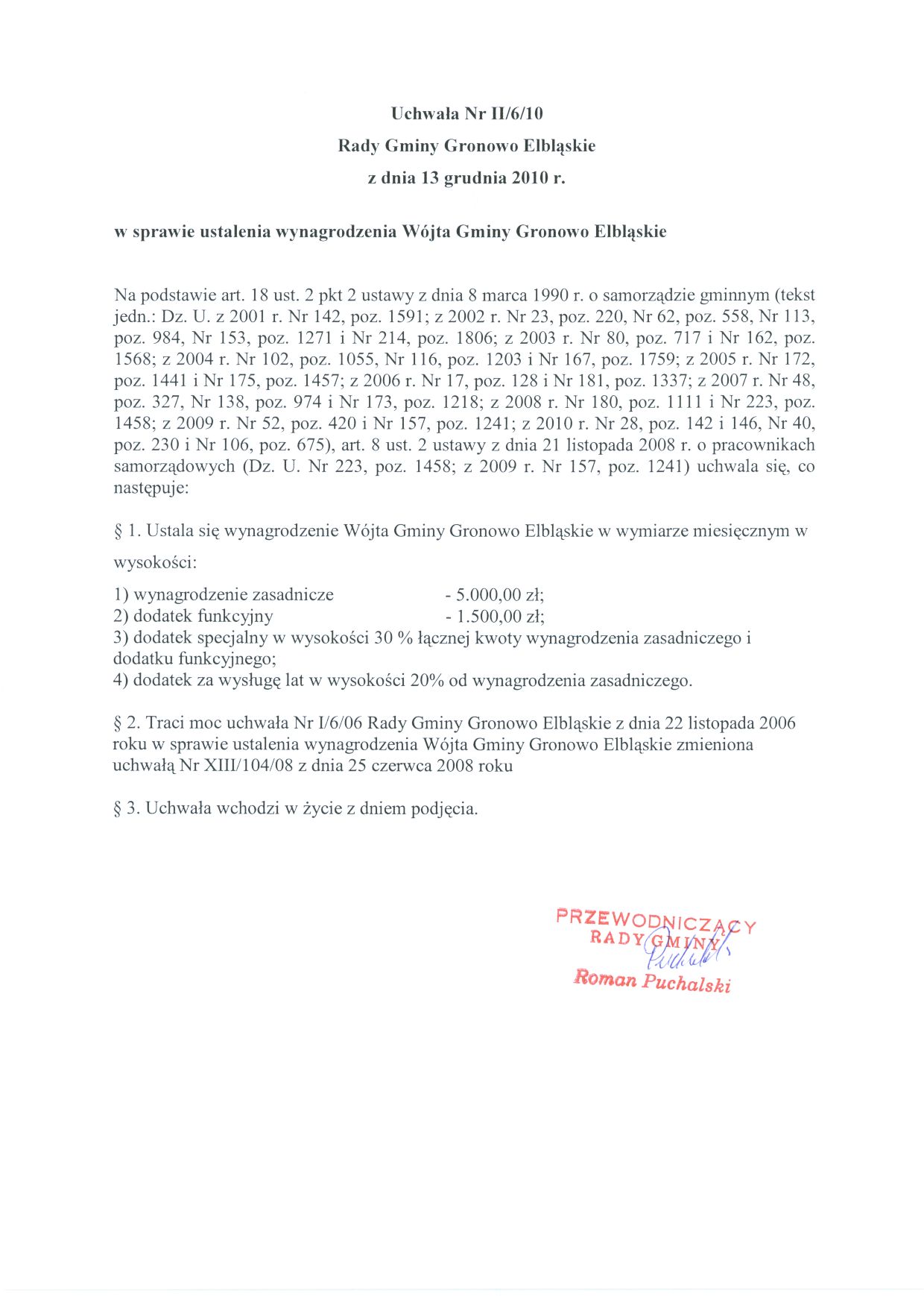 W sprawie ustalenia wynagrodzenia Wójta Gminy Gronowo Elbląskie