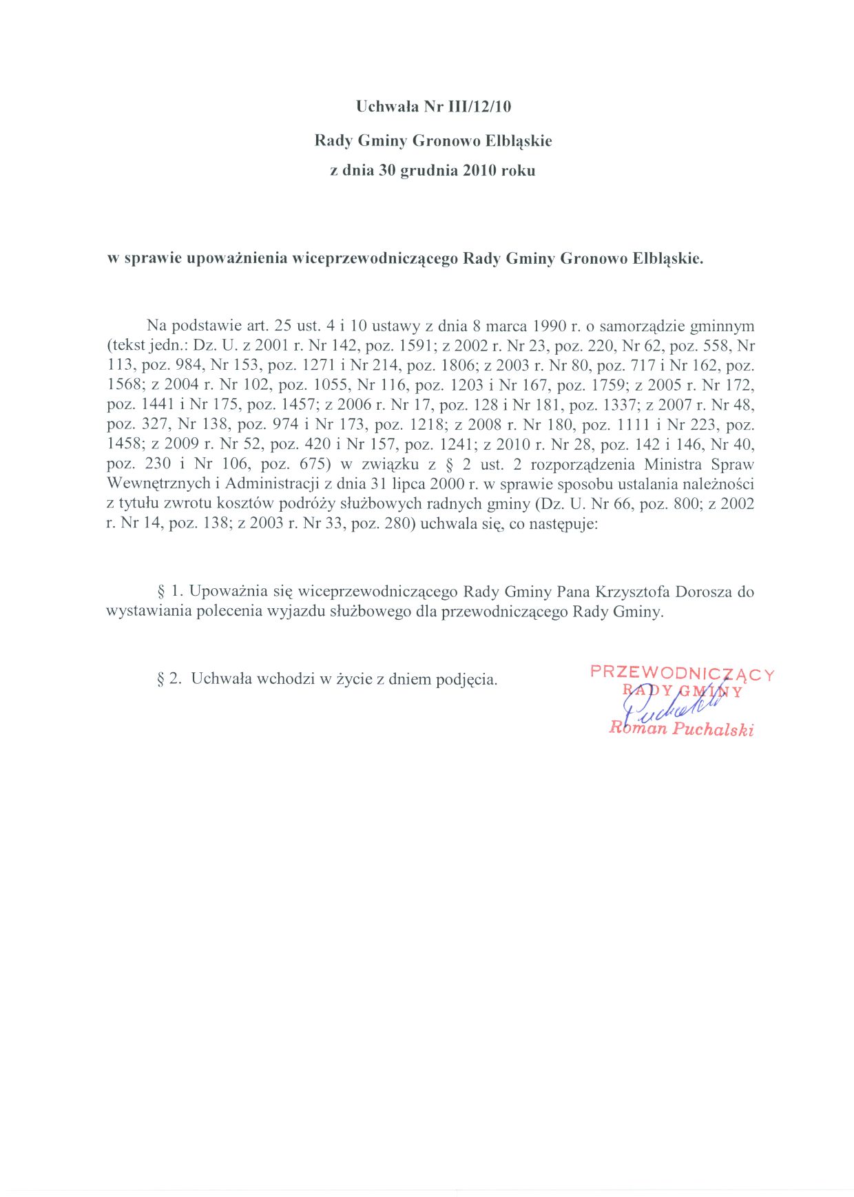 W sprawie upoważnienia Wiceprzewodniczącego Rady Gminy Gronowo Elbląskie