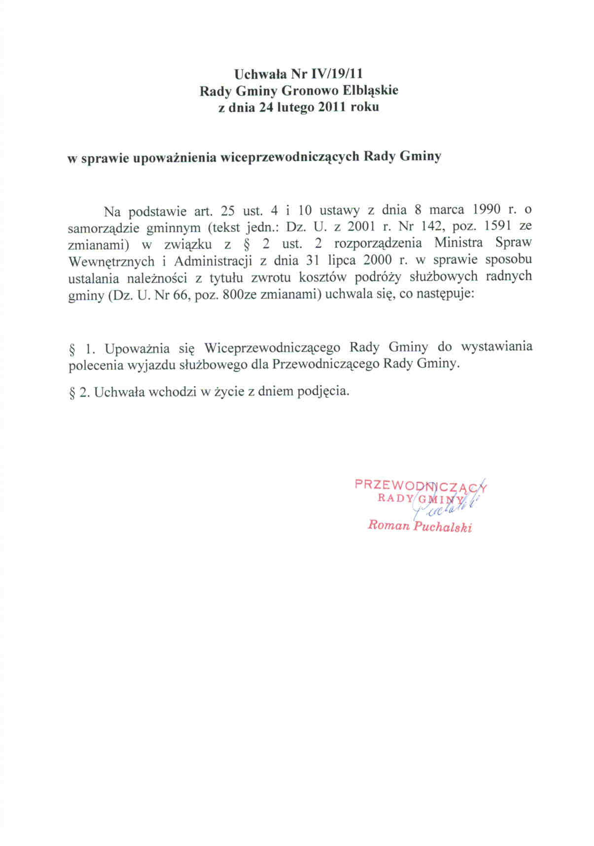 Uchwała Rady Gminy Nr IV/19/11