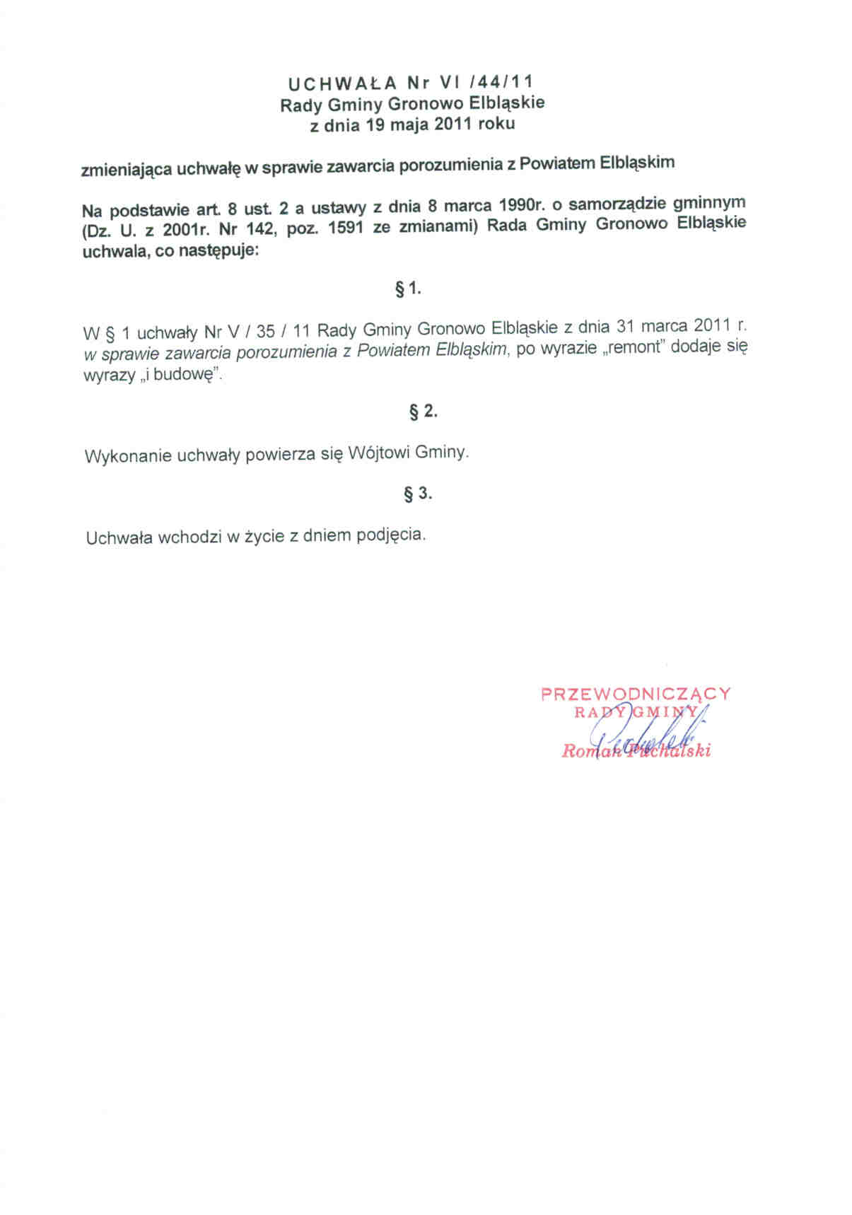 W sprawie zmiany uchwały w sprawie zawarcia porozumienia z Powiatem Elbląskim