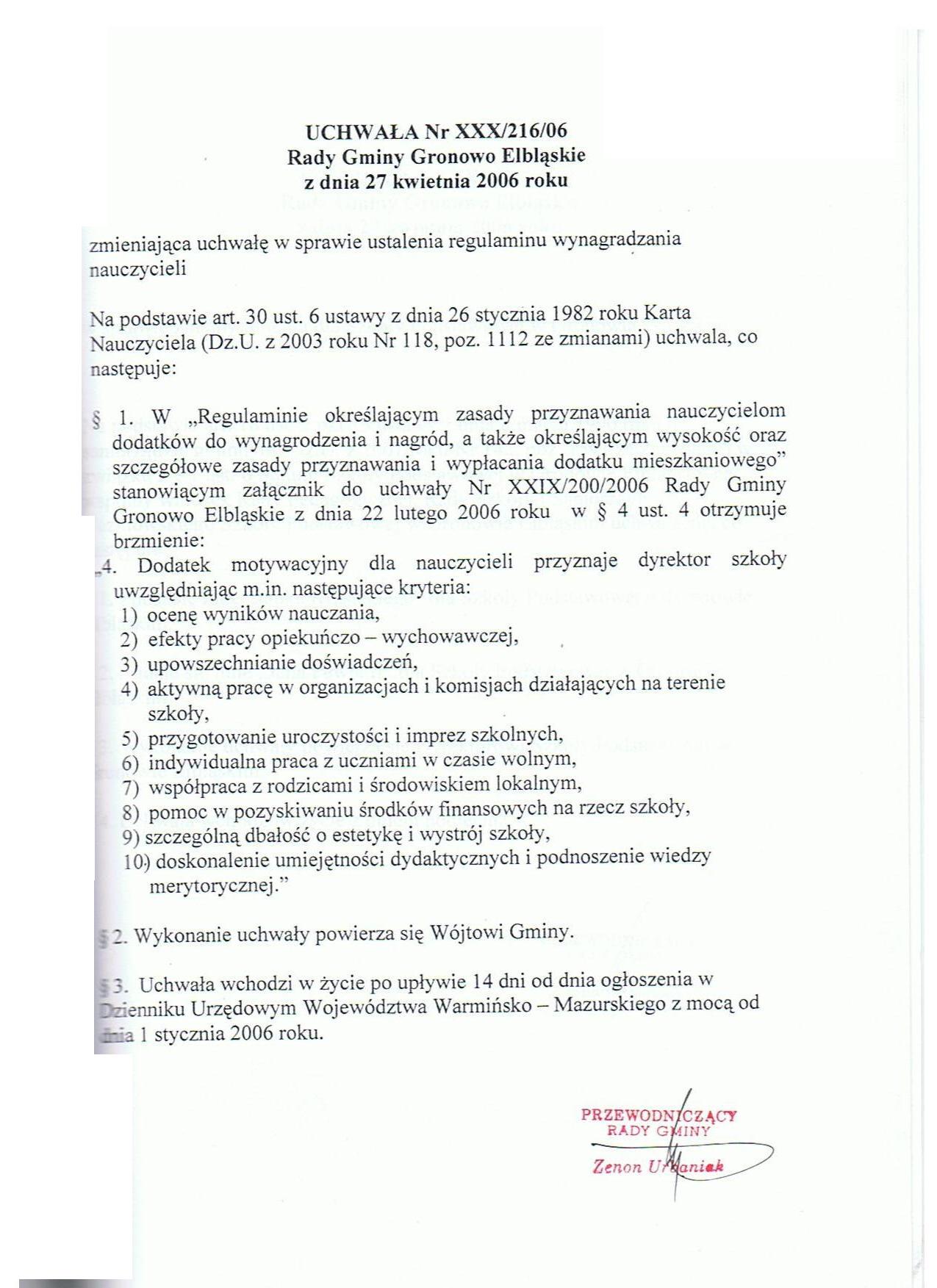 W sprawie zmiany uchwały w sprawie ustalenia regulaminu wynagradzania nauczycieli
