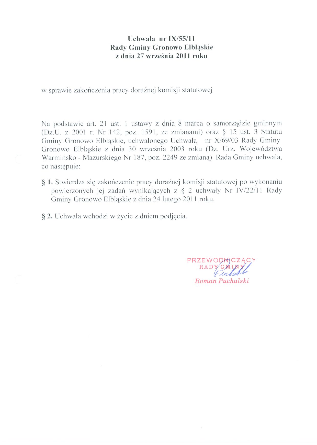 W sprawie zakończenia pracy doraźnej komisji statutowej
