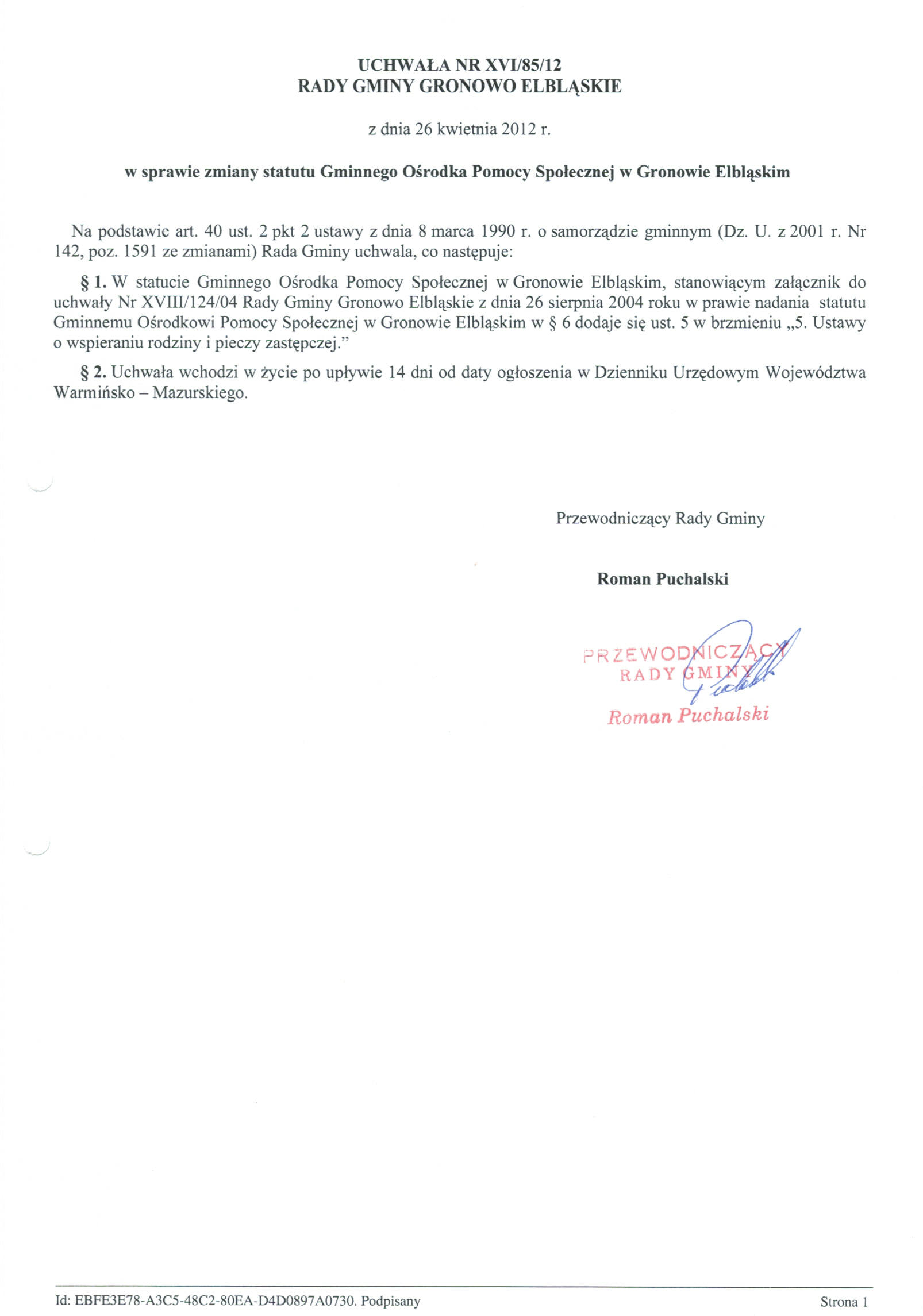 W sprawie zmiany statutu Gminnego Ośrodka Pomocy Społecznej w Gronowie Elbląskim