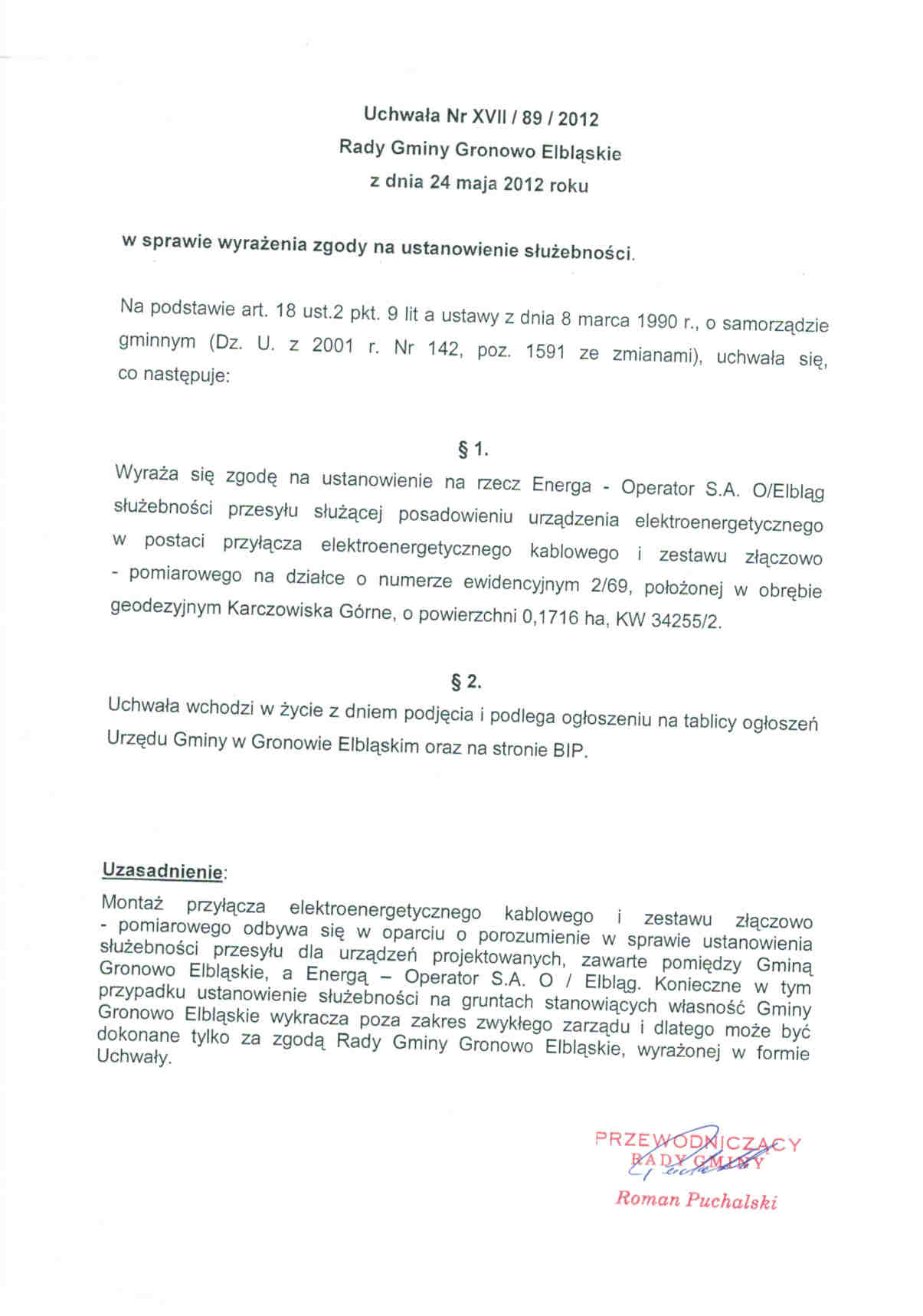 W sprawie wyrażenia zgody na ustanowienie służebności