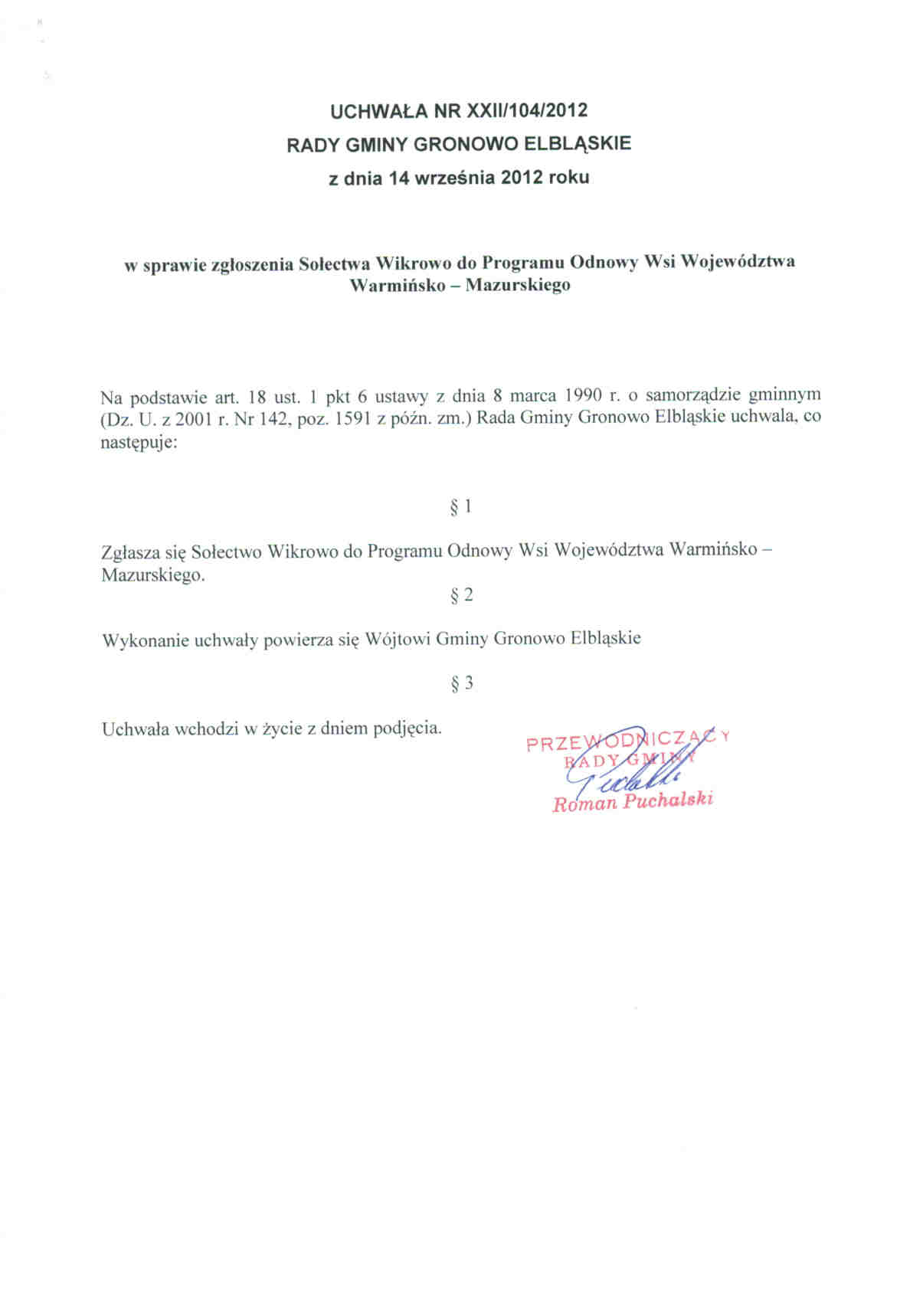 w sprawie zgłoszenia sołectwa Wikrowo do Programu Odnowy Wsi Województwa Warmińsko -Mazurskiego
