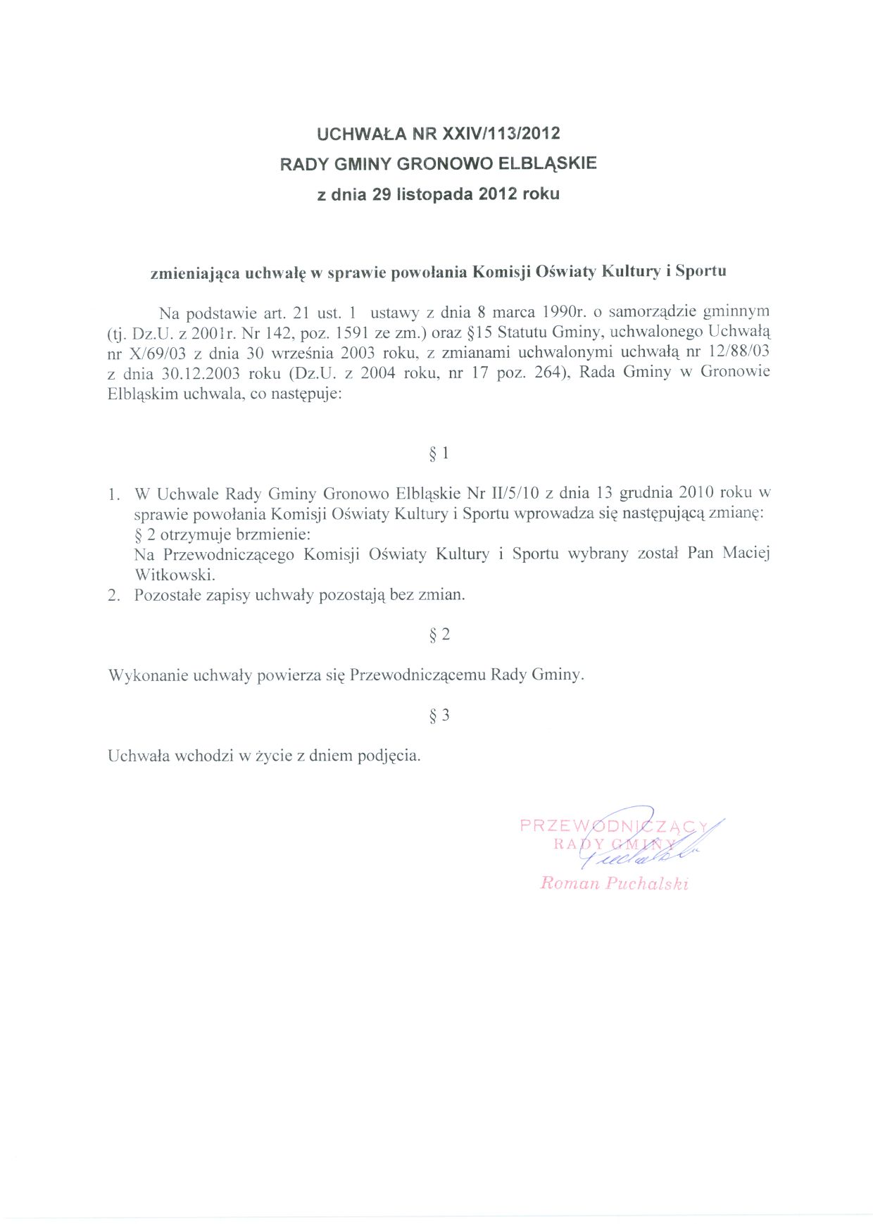 Uchwała Rady Gminy Nr XXIV/113/2012