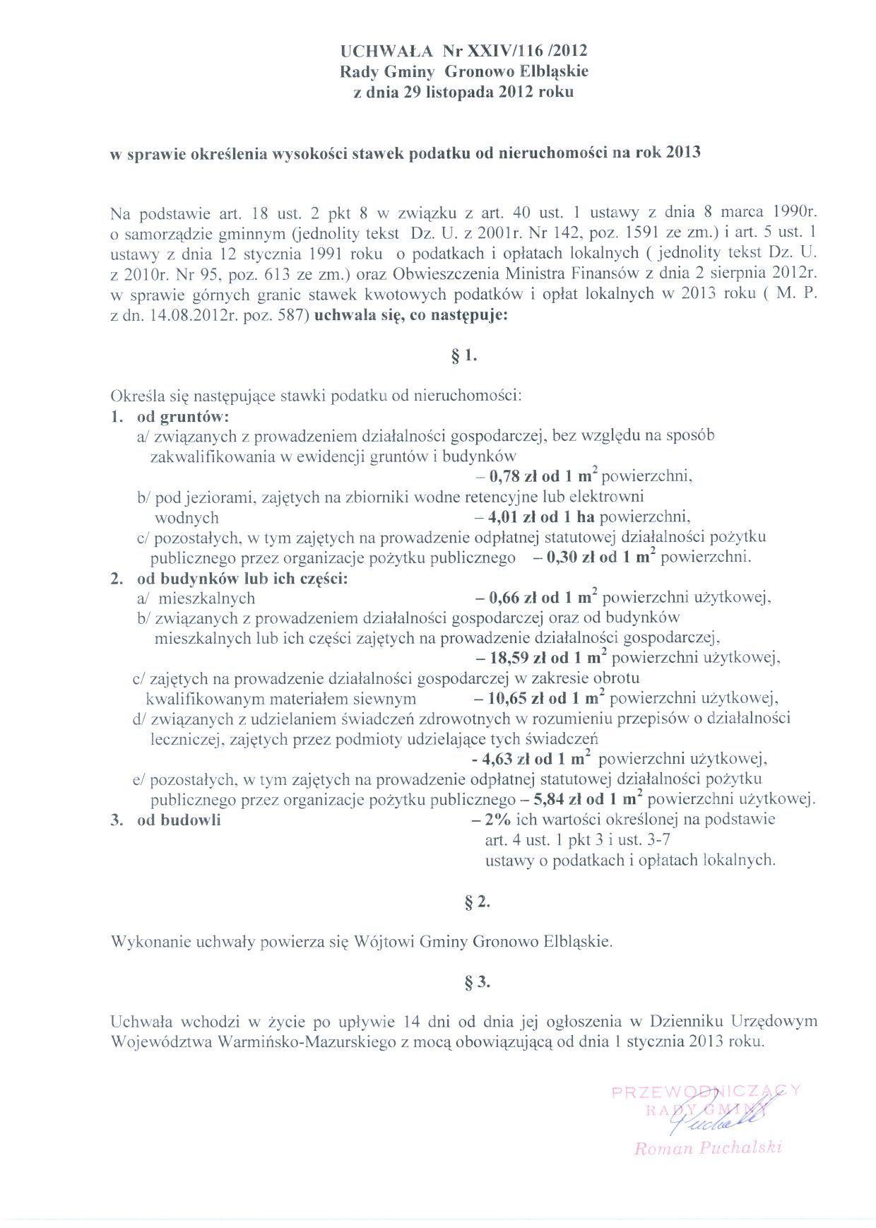 Uchwała Rady Gminy Nr XXIV/116/2012