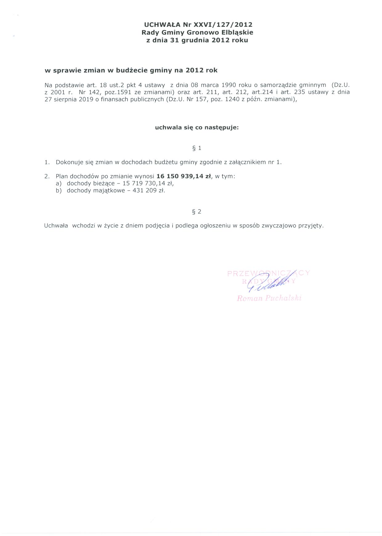 Uchwała Rady Gminy Nr XXVI/127/2012
