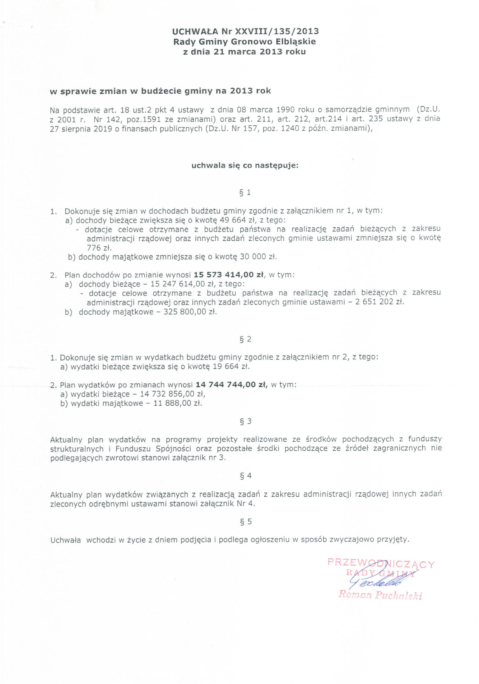 Uchwała Rady Gminy Nr XXVIII/135/2013