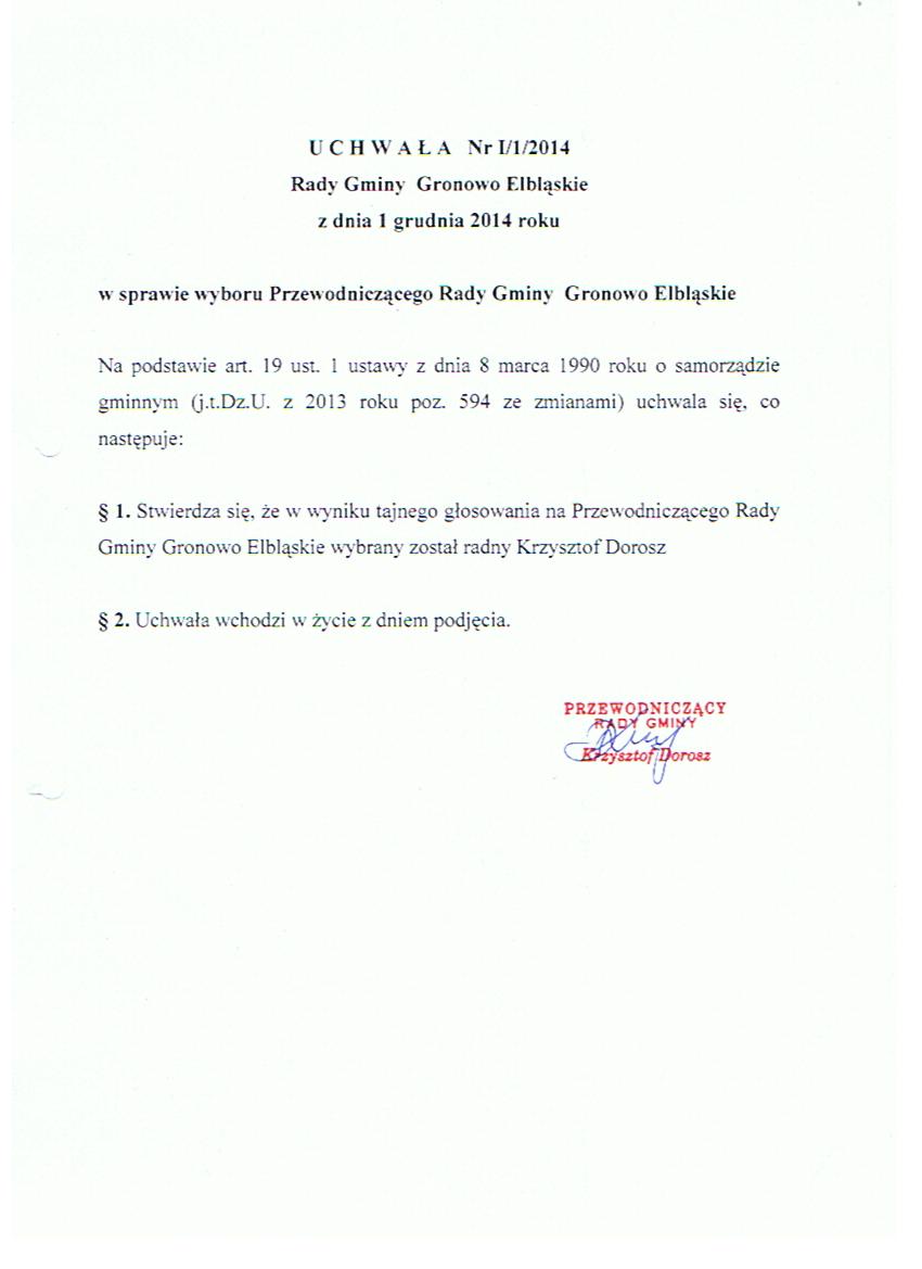 W sprawie Wyboru Przewodniczącego Rady Gminy Gronowo Elbląskie