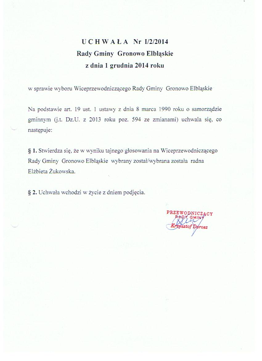 W sprawie wyboru Wiceprzewodniczącego Rady Gminy Gronowo Elbląskie
