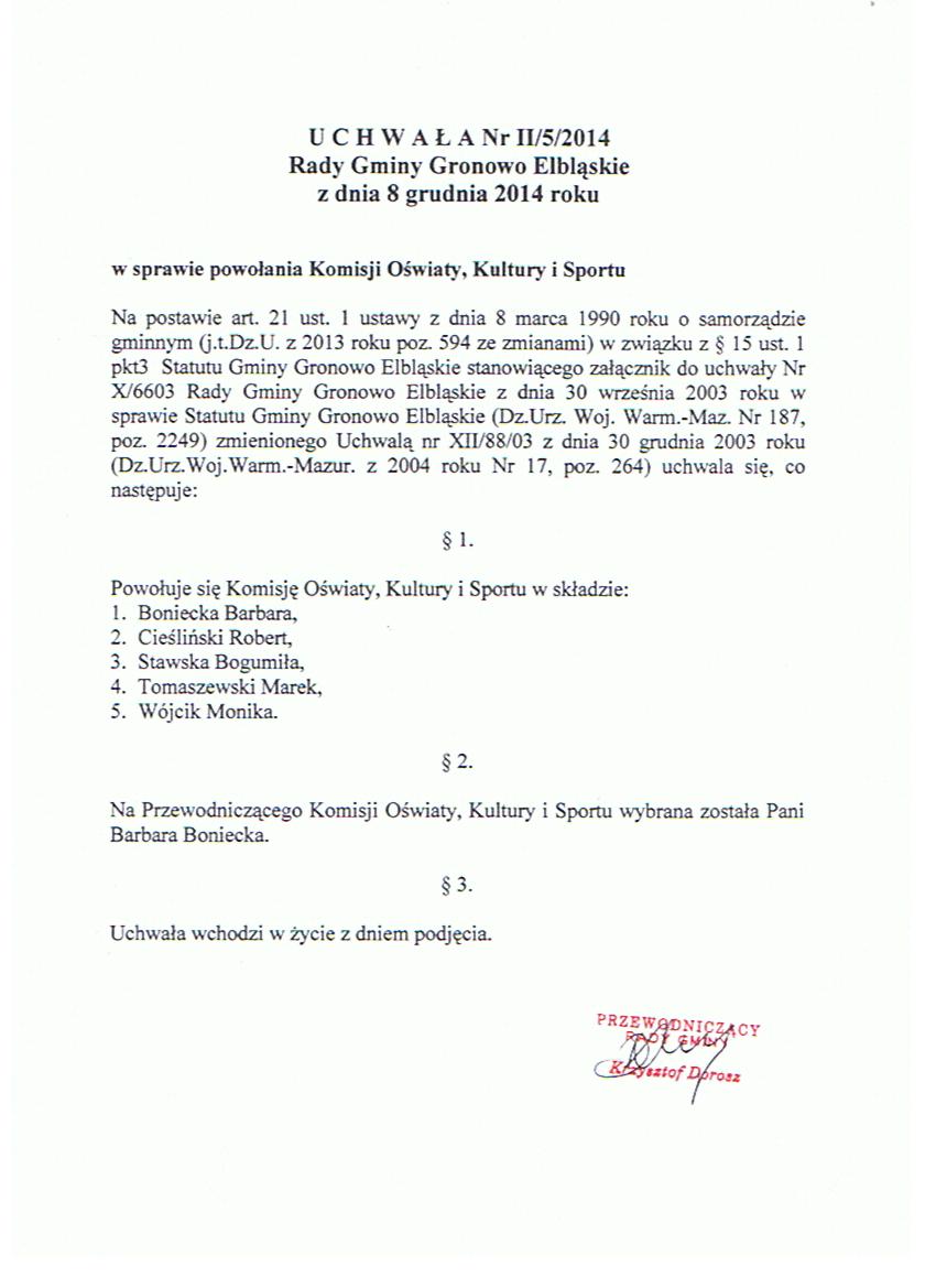 W sprawie powołania Komisji Oświaty, Kultury i Sportu