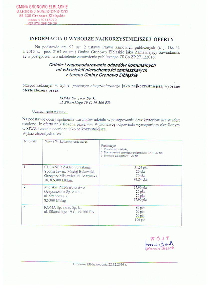 - informacja o wyborze najkorzystniejsze oferty 1