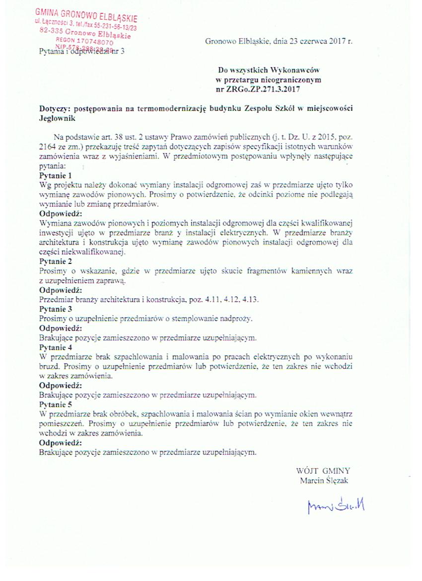 SIWZ na termomodernizację budynku Zespołu Szkół w miejscowości Jegłownik