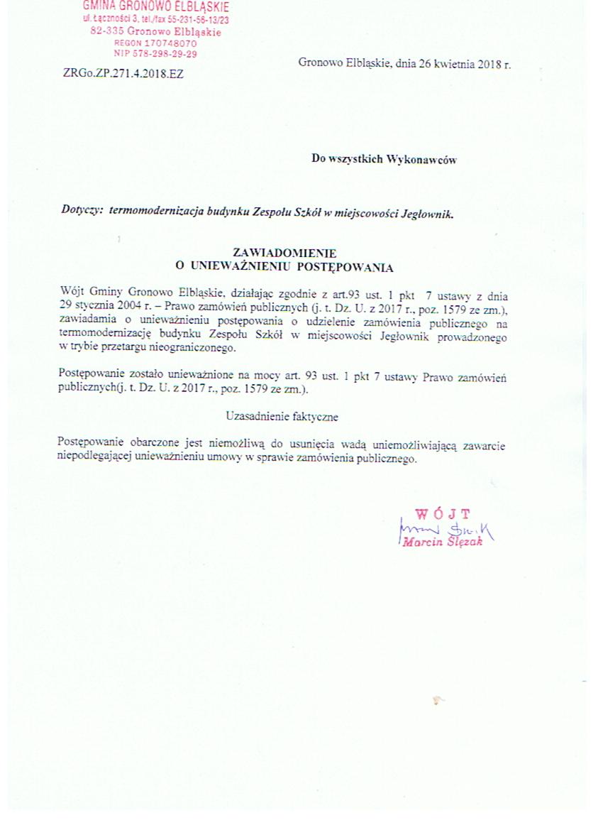 - SIWZ Termomodernizacja budynku Zespołu Szkół w miejscowości Jegłownik z dnia 24.04.2018 r.